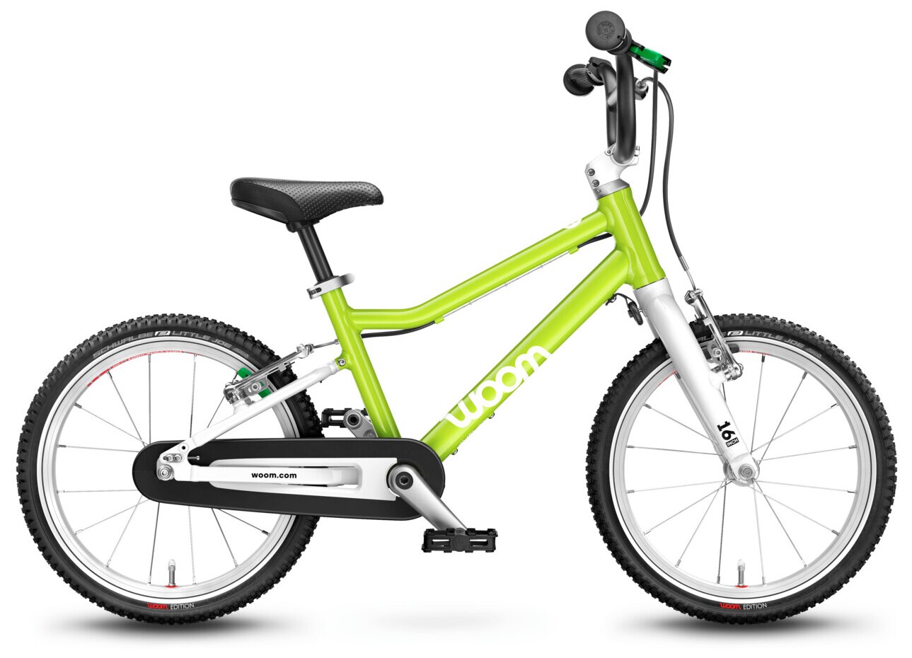 Dětské jízdní kolo Woom Original 3 váží pouhých 5,4 kg! Geometrie rámu nabízí přirozený vzpřímený posed jezdce a zajišťuje tak bezpečné a jisté ovládání. Kolo Woom 3 je osazeno komponenty speciálně navrženými pro dětské potřeby. Má barevně odlišenou zadní brzdu pro snadnou orientaci a rychlé osvojení jízdních dovedností, omezovač proti přetočení řídítek, ochranný kryt řetězu, kvalitní lehké pláště Kenda a možnost snadné úpravy výšky sedla pomocí rychloupínáku.