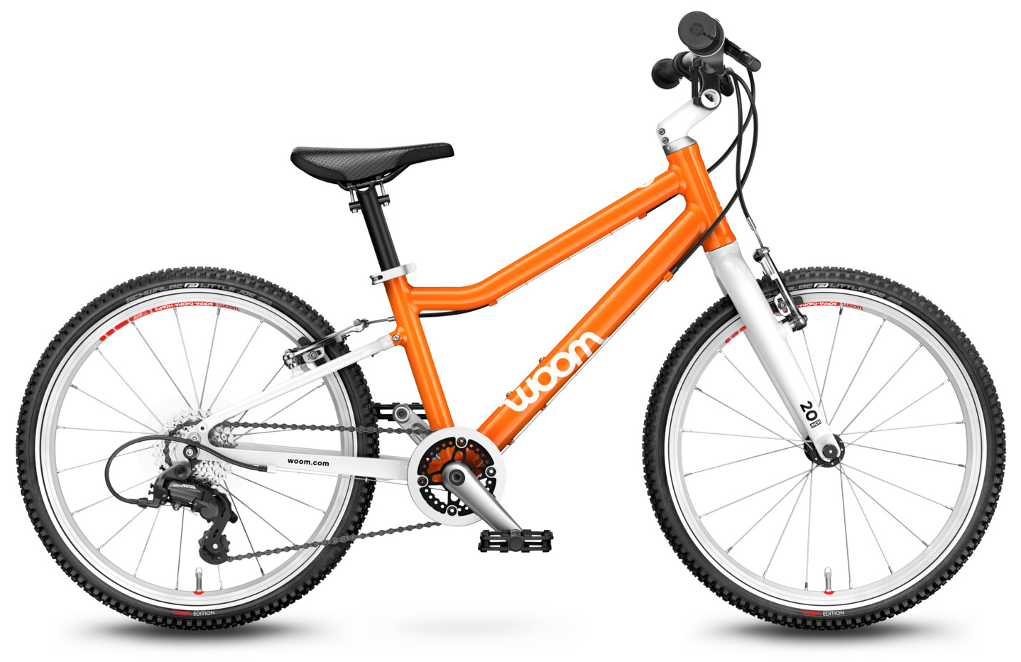 Dětské lehké kolo WOOM 4. Toto kolo z rakouské produkce má 20" kola a váží pouhých 7,7 kg. Lehké kolo je určeno pro děti od 6 let s minimální výškou 115 cm. Délka vnitřní nohy by měla být aspoň 56 cm. Vyrábí se v pěti barvách. Fialová, zelená, žlutá, modrá a červená. Mezi hlavní přednosti patří důmyslná geometrie rámu pro vzpřímenou polohu jezdce, 7stupňová přehazovačka, rychloupínák pod sedlovkou a pláště Kenda s reflexním páskem.