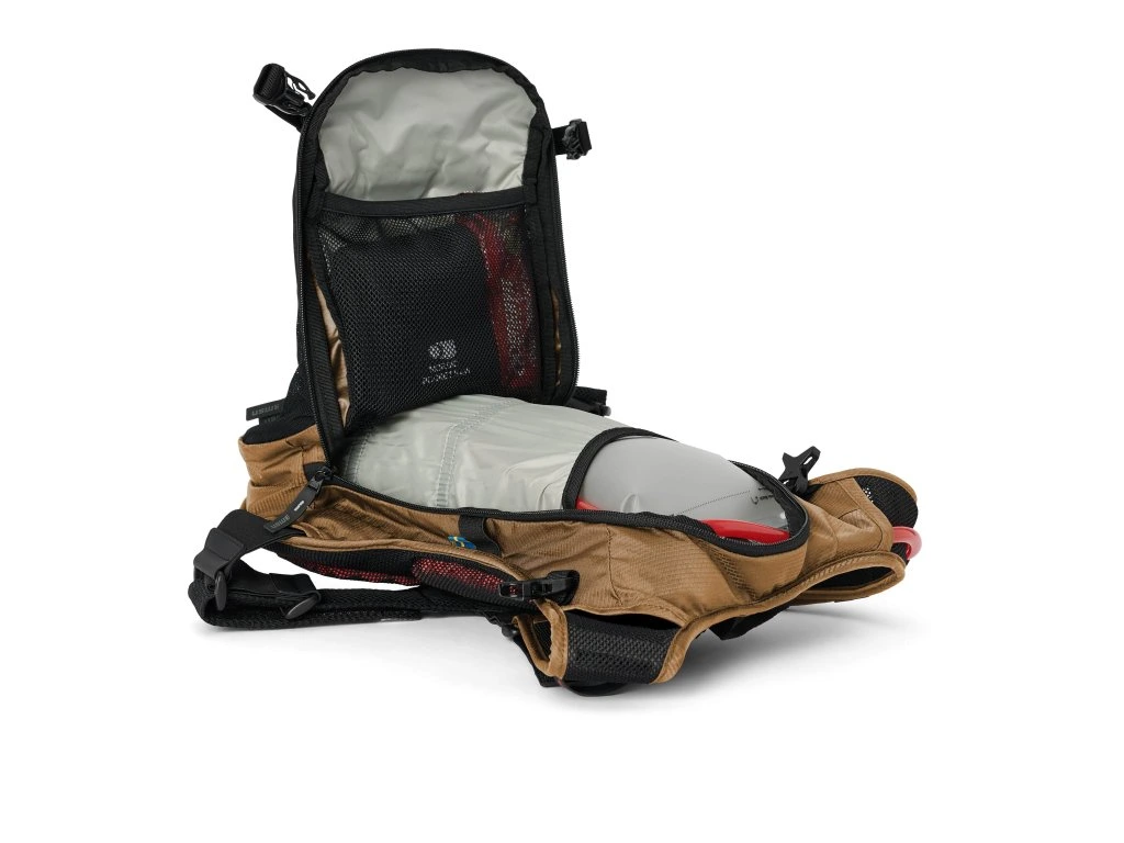 - Objem 9 l: hlavní prostor pro vak a výbavu, organizační kapsy na nářadí, jídlo a drobnosti