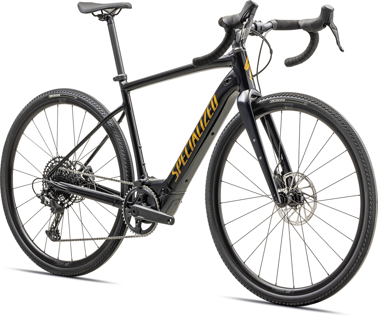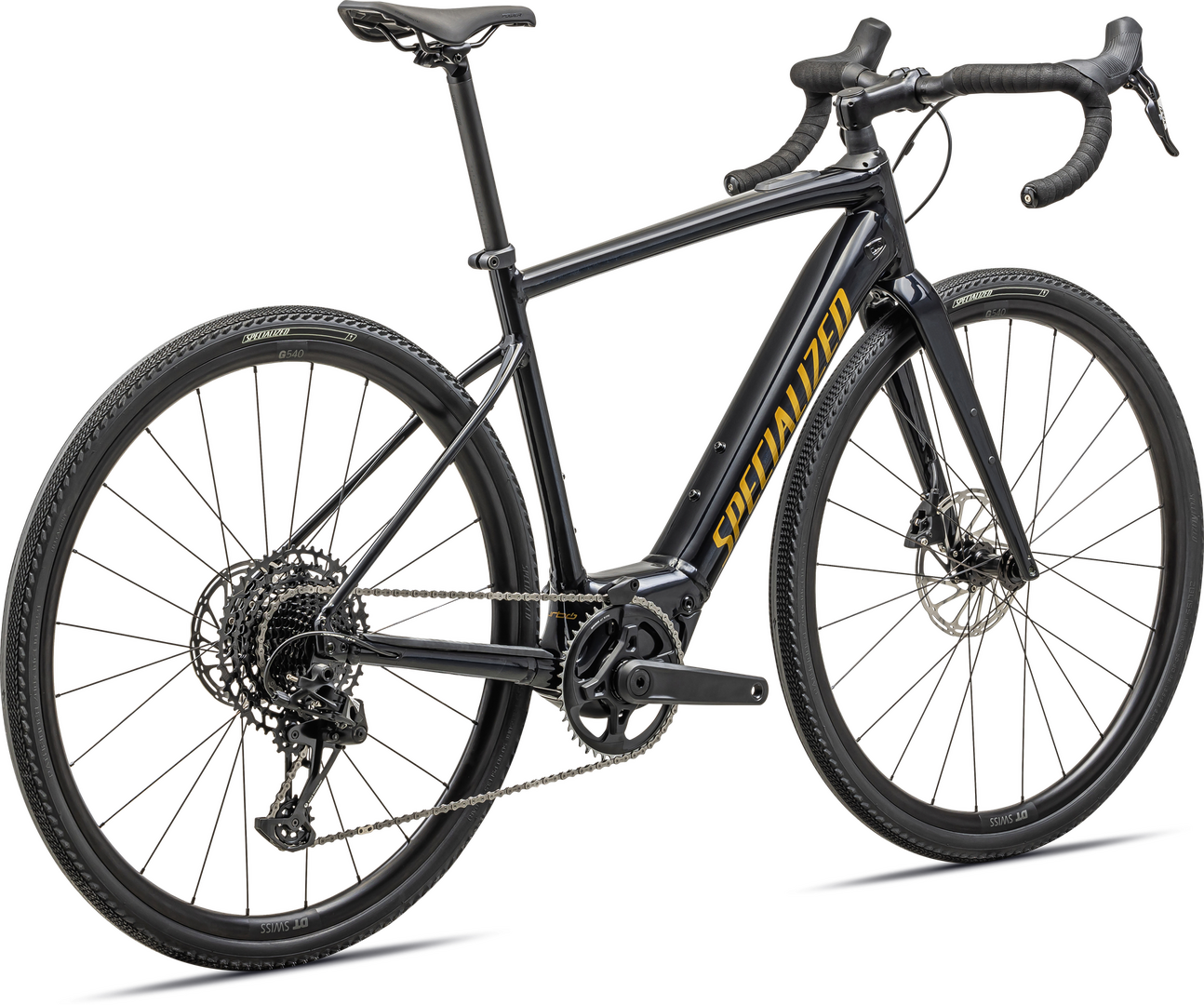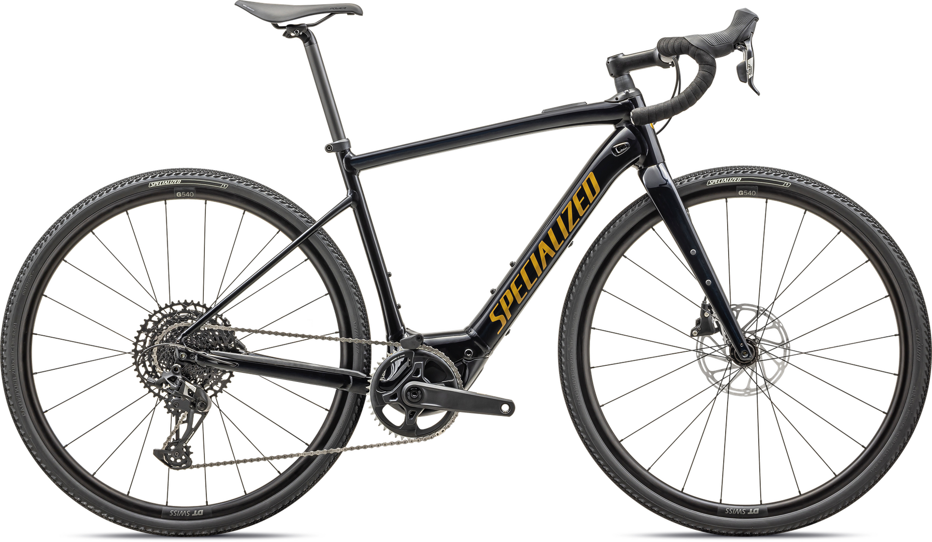 Specialized E5 Premium Aluminum frame, front/rear thru-axles, fully integrated down tube battery, internal cable routing, fender/rack mounts, 12x142mm, flat-mount disc brakes