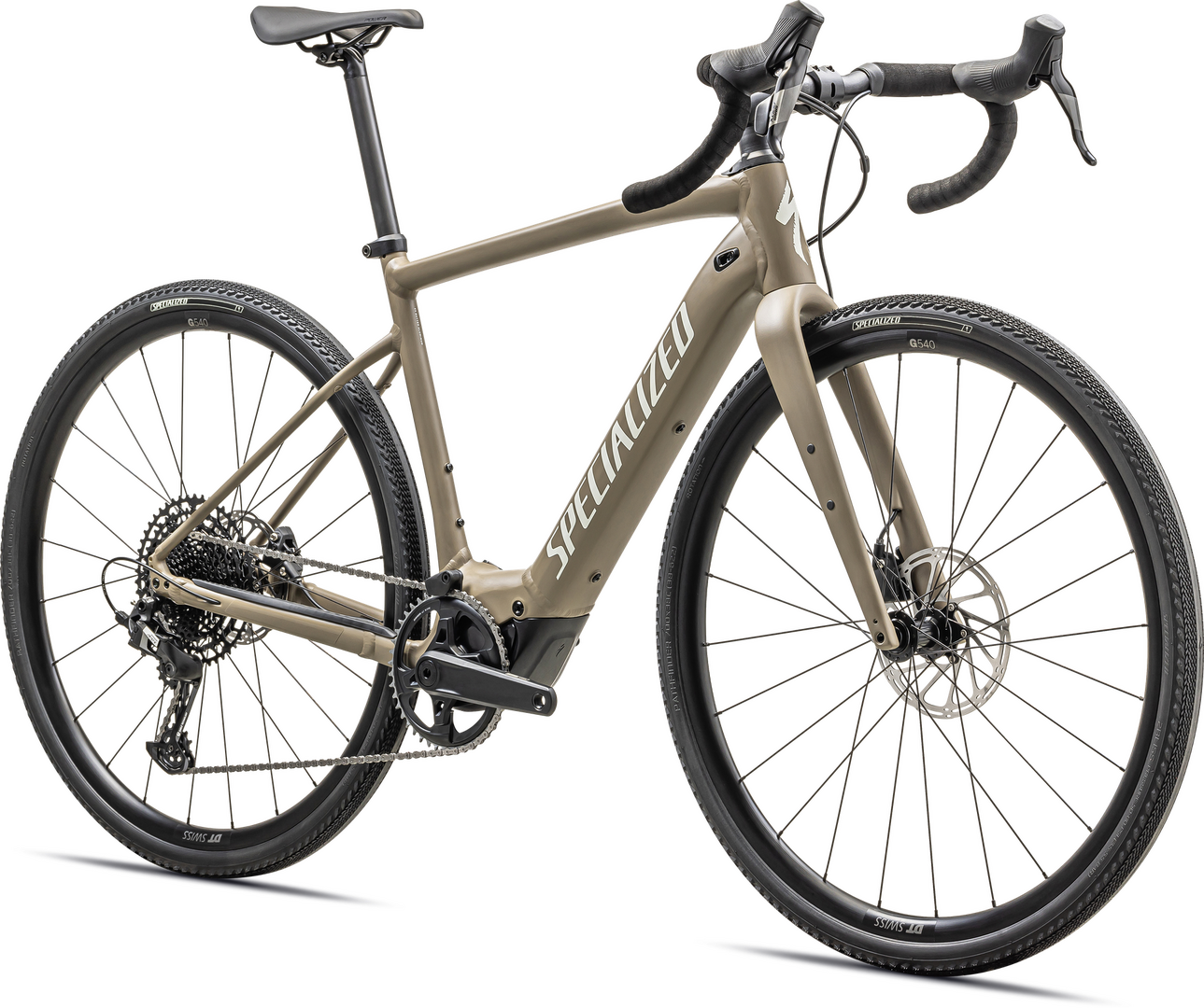 Specialized E5 Premium Aluminum frame, front/rear thru-axles, fully integrated down tube battery, internal cable routing, fender/rack mounts, 12x142mm, flat-mount disc brakes