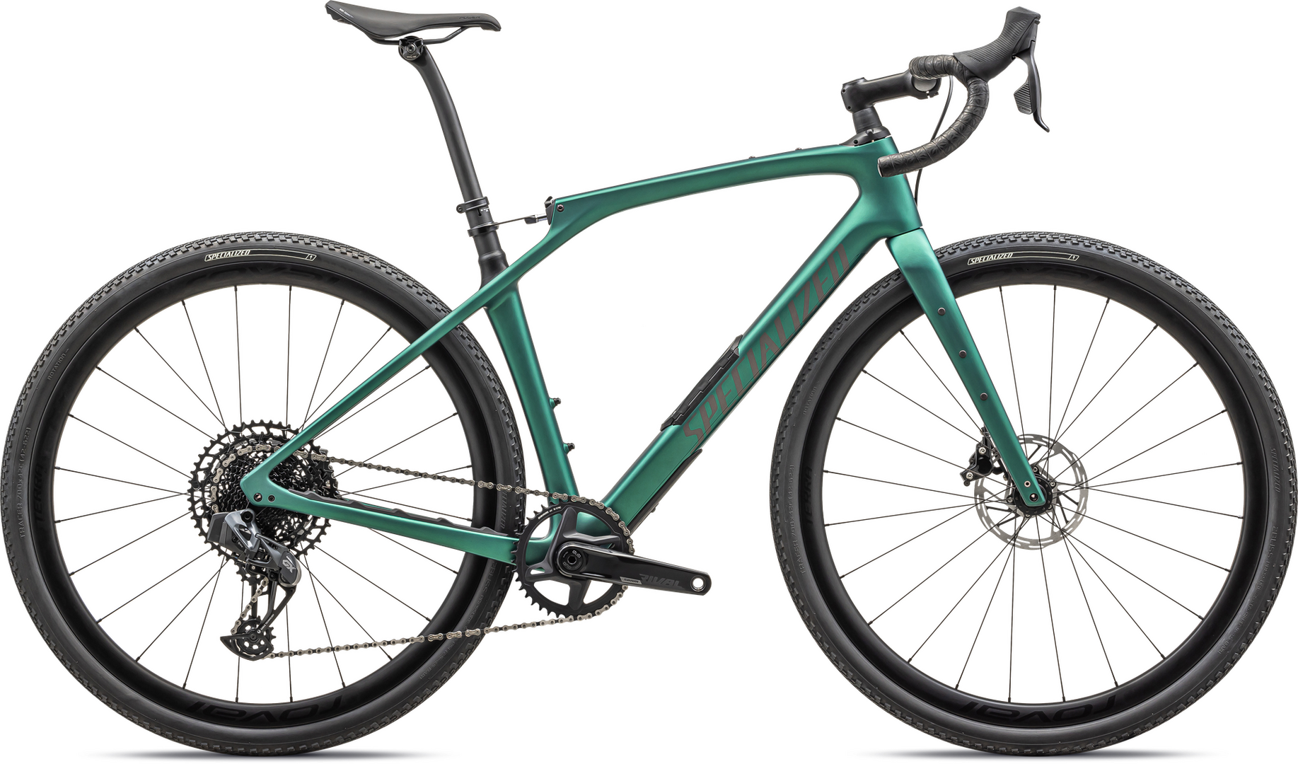 With Future Shock suspension front and rear, the new Diverge STR delivers compliance without compromise. By suspending the rider—instead of the bike—Future Shock technology increases control and efficiency while decreasing fatigue, so you’ll be riding farther and faster over chunkier terrain than you believed possible. And the Diverge STR does this without the weight, sluggish pedal response, and inefficiency of other suspension systems. The Diverge STR Expert starts with our FACT 11r carbon frameset with front and rear Future Shock suspension. It’s built with a mix of SRAM’s Rival and GX AXS components for fast, efficient shifting with a 10-50 cassette to ensure you have the gearing to tackle any ride. The bike rolls on the Roval Terra C wheels with 42mm Tracer Pro tires. Adventure Gear alloy handlebars, an S-Works carbon seatpost, and Power Expert saddle complete the package making the Diverge STR the most capable Diverge ever.