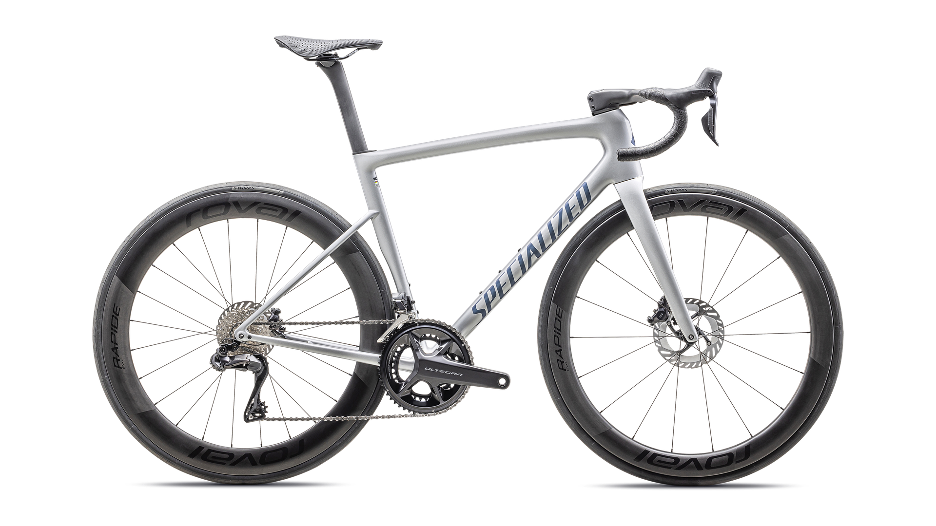 Tarmac SL8 Pro je osazený prvotřídní kompletní sadou Shimano Ultegra 8100 Di2 s wattmetrem, zapletenými koly Roval Rapide CL II s přípravou na bezdušové pláště, řídítky Roval Rapide a představcem SL7. Naskoč na něj a vítězství je tvé.