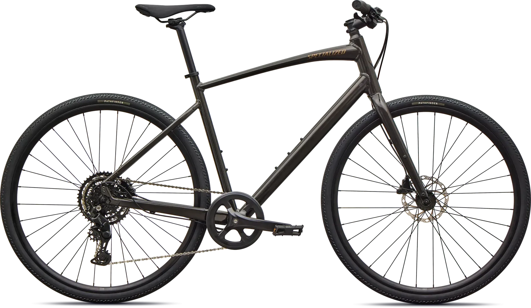 Specialized A1 Premium Aluminum, Fitness Geometry, butted tubing, internal cable routing, flat-mount disc, quick-release, Plug + Play rack/fender mounts