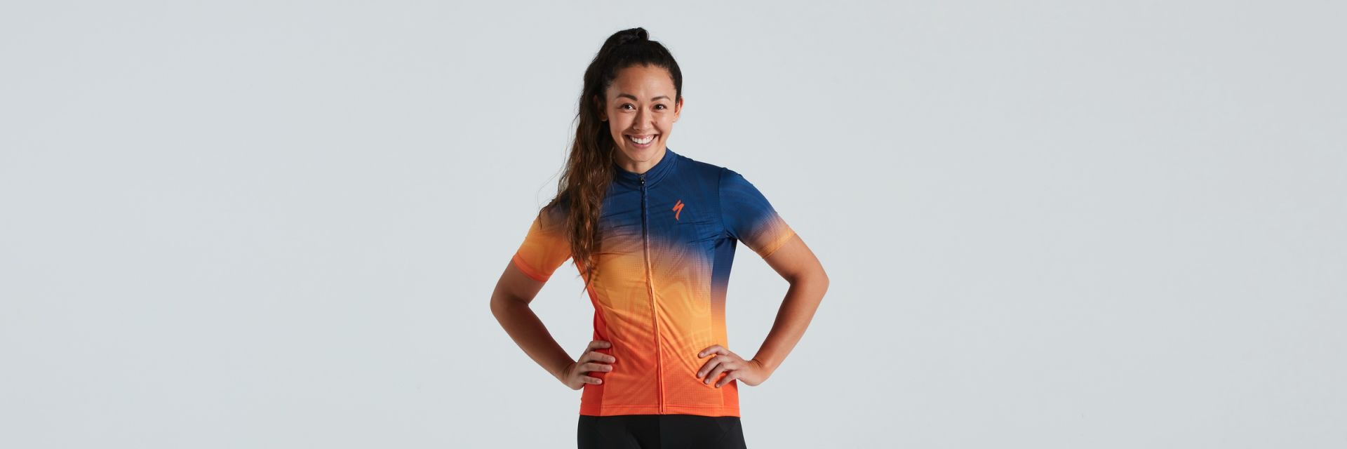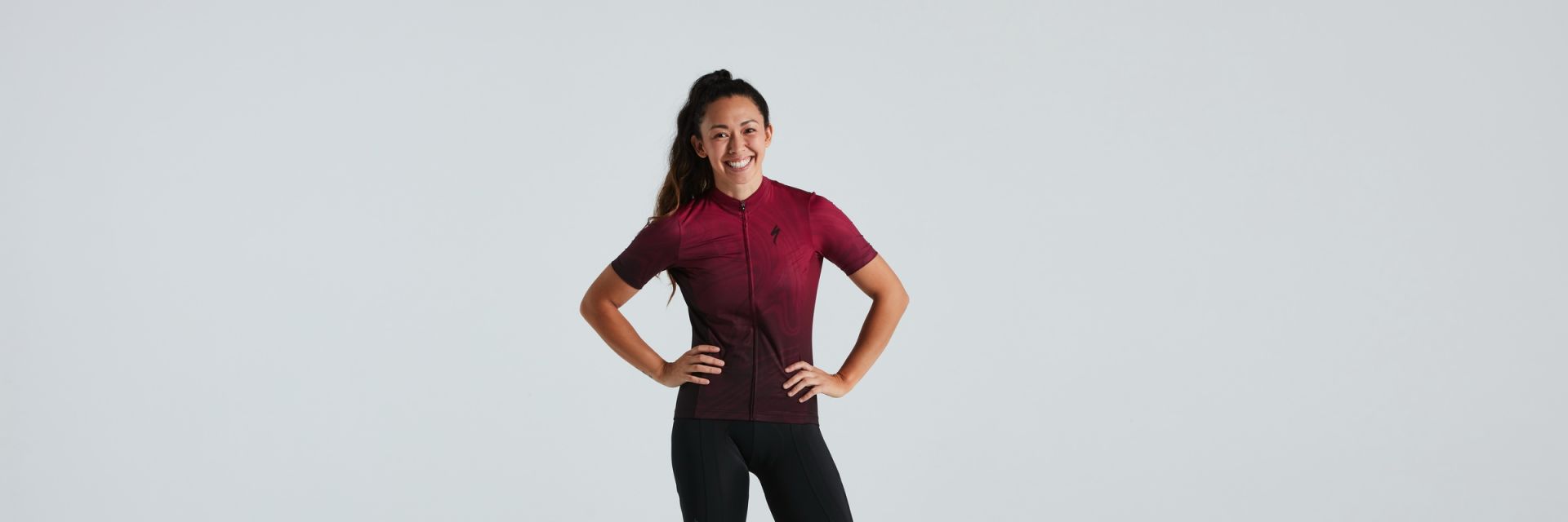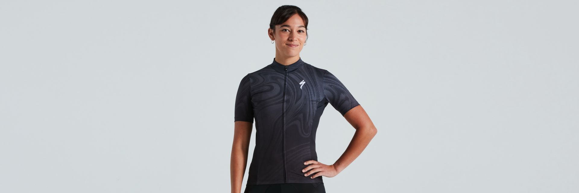 - Dámský cyklistický dres s krátkým rukávem vyrobený z elastické a pohodlné tkaniny SL 136. Boční vložky z SL Fly tkaniny z polyesteru, s nízkou horizontální elasticitou, aby se zabránilo prověšování.